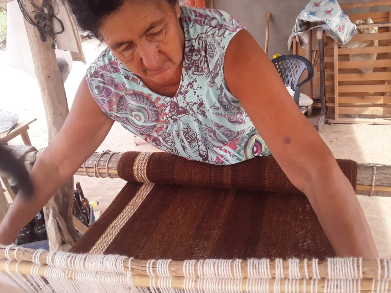 The weaving itself is a slow, meditative process that follows techniques passed down through generations—held in memory, in gesture, in the rhythm of rural life. Using horizontal or circular looms, the teleras create intricate patterns that echo the forms and textures of the land—the bark of native trees, the dry grasses, the soft movement of wind over earth. Each product is one-of-a-kind, shaped not only by the artisan’s hands, but by the tempo of nature.